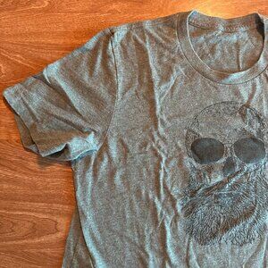 Bearded Skull Tee Grey Graphic Hipster Funny T-Shirt Size M