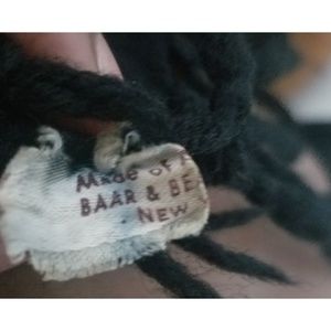 Preowned Baar and Beards scarf, in good wearable condition with minor wear and tear. There is a small tear by the tag, which is causing the tag to come apart(completely unnoticeable unless you are looking for it). Really sold scarf for the fall/ winter weather. Made of Wool material...