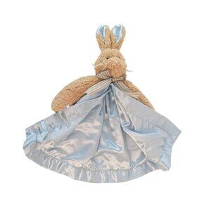 Bearington Baby Collection Bunny Rabbit Lovey Blue Satin Trim Security Blanket