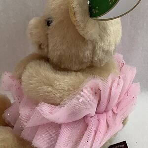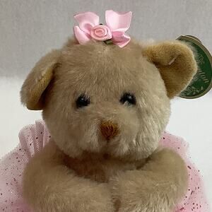 This sweet bear is brand new with tags and stands approximately 8 inches tall. She's dressed in a charming tutu, perfect for any ballerina enthusiast or plush toy collector.