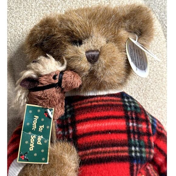 This adorable Bearington Collection plush bear is in good used condition, ready to bring joy to a new home! Gavin is dressed in a charming red plaid pajama set with a Stuck Horse Cowboy Hat, making him extra cuddly. Measuring approximately 15 inches tall, he's the perfect size for snuggling.