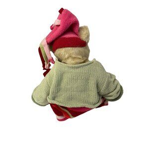 This Bearington Collection teddy bear exudes charm with its striped dress and coordinated jacket. The bear's fashion includes a stylish hat and vibrant red boots. Crafted with attention to detail, this collectible plush offers a timeless appeal for enthusiasts and collectors alike.