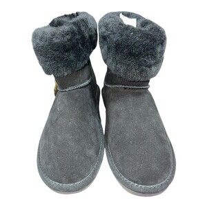 Bearpaw Abby Women's Suede Sheepskin Wool Fur Slip On Ankle Boots Sz 8 Black