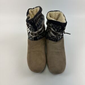 Bearpaw Amber Bootie Taupe Pull On Ankle Suede Patchwork Wool Sheepskin New W 8