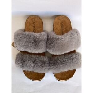 Bearpaw Analia Women’s Furry Sandals Slippers Gray Fog Size 8 Platform