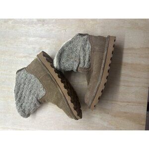 Bearpaw Ankle Boots Women’s Size 8 Cow Suede Wool Blend Lining Brown Knit