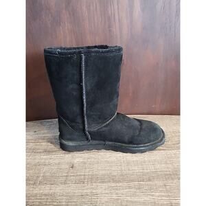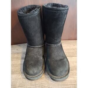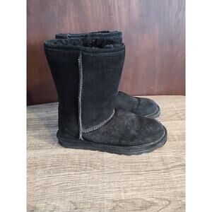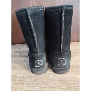 Bearpaw Black Suede Womens 8 Boot Mukluks Flats Sherpa Winter Warm Mid Calf