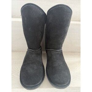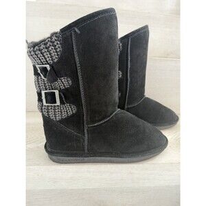 Bearpaw Boshie Black Suede Knit Sheepskin Wool Buckle Boots Youth Size 5