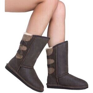 Bearpaw Boshie Womens Boots Size 10M Brown Slip On Fur Lined Cozy Outdoor Shoes