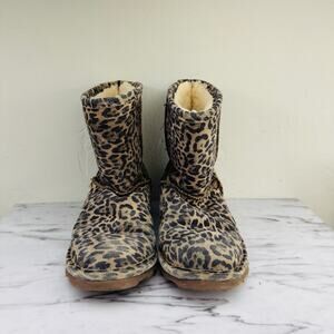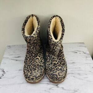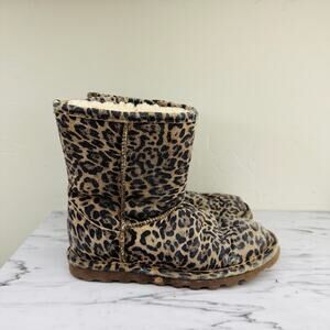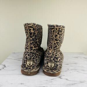 Bearpaw Brown Cheetah Print Fur Lined Winter Boots Girls Size 4