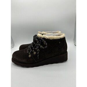 Bearpaw Brown Faux Fur Suede Lace Hiker Ankle Boot Booties Size 9