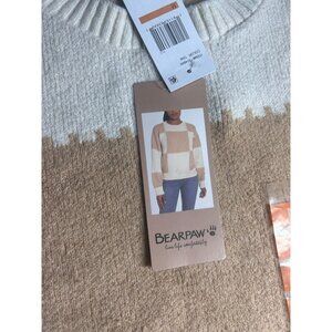 Bearpaw Checkered Crew Neck Sweater Women's Medium Tan & White NEW