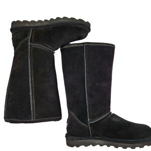 Bearpaw Elle tall black suede, water resistant, winter boot with wool/sherpa lining.