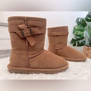 Bearpaw Girl’s Val Youth Boot in Suede Cognac. Size 2