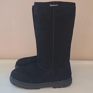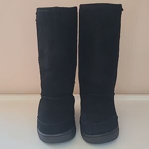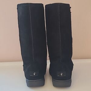 Bearpaw Meadow 10" Black Suede Boots with Shearling Lining Size 7