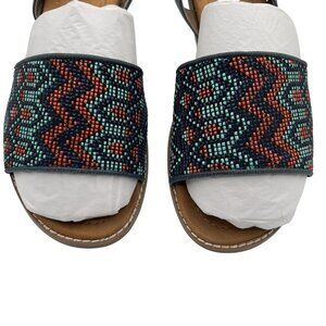 Bearpaw Meeka Women 11 Aztec Slingback Sandals Southwestern Multicolor Beaded Suede Footbed Boho Outdoors Comfort Summer Shoe Artsy