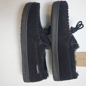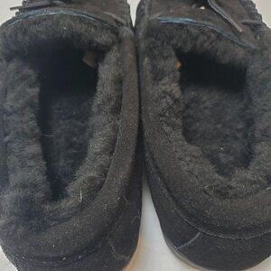 Bearpaw Moc II Men's Slippers Sheepskin Black Size 10 New. Cow suede upper. New no box. Please see all pictures for more details.