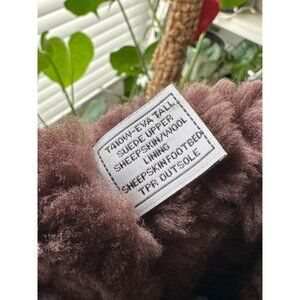 12 inch shaft height, 14 inch circumference. Suede upper, Sheepskin and wool blend lining.