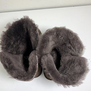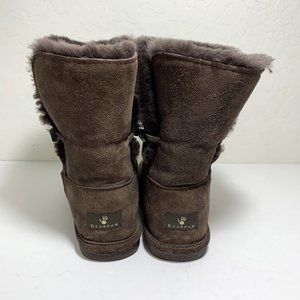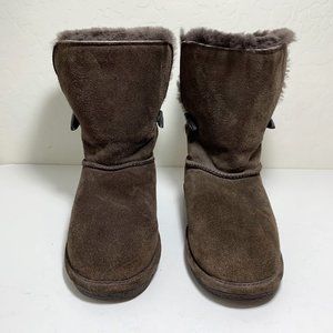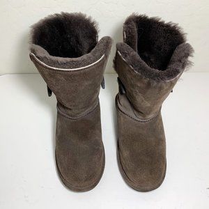 Bearpaw Victorian Boots Sheepskin Suede Toggle Booties Chocolate Brown Size 7