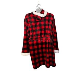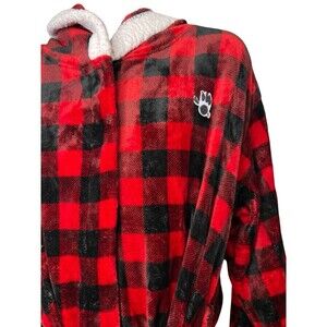 Stay cozy and stylish this winter season with this Bearpaw flannel sherpa hooded mid-length winter robe. The plush red plaid pattern and long sleeves make it the perfect addition to your chilly weather wardrobe. The robe features a tie closure and is made of soft polyester material that will keep you warm all night long.