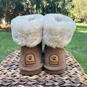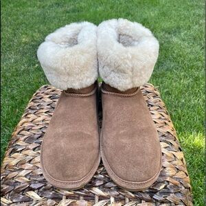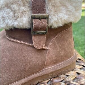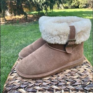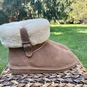 Bearpaw Womens Abby 6" Cuffed Shearling Short Boot with Buckle Detail Size 9.