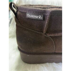Bearpaw Womens Short Brown Suede Winter Boots With Plush Fleece Lining Size 10