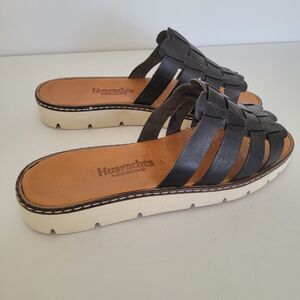 Bearpaw Womens Vanessa Black Leather Huarache Sandals Slip On 9 Medium (B,M) New with the box.