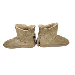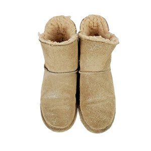 Bearpaw Youth Sz 4 Sparkle Suede Boots Wool Blend & Sheepskin Sherpa Lined XLNT