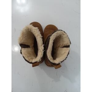 Bearpaw brand women's size 7 Nova boot hickory color micro suede outside wool blend inside. In used condition the wool inside is not in perfect condition but is in good condition outside is in good condition signs of wear. Tweed outside design with two buckles is a classic vintage look for these bearpaw boots ultimate comfort and warmth and style.