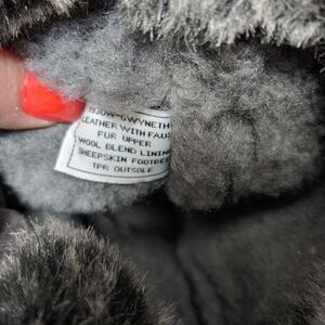 Bearpaw Womens Size 9M Black W/ Grey Fur Top Side Zip Boot.