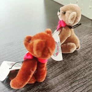 Two Fuzzy Bear friends will always have time to play and have tea with biscuits. These miniatures are perfect for dollhouse sized entertainment. One is dark brown and the other blonde. Can Sit, stand and pose on all fours! Never used.
