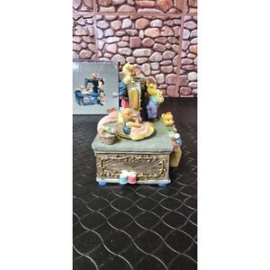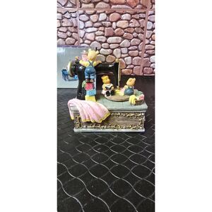 Bears Sewing Machine Music Box Sankyo Animated Turntable Resin