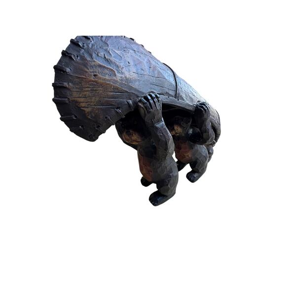 Bears / Wood / Black Bears Carrying a Boat Figure / Hand carved / Japanese Vintage / EUC