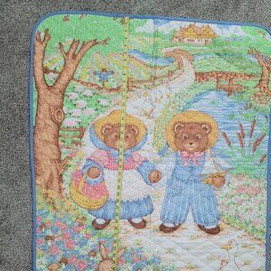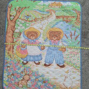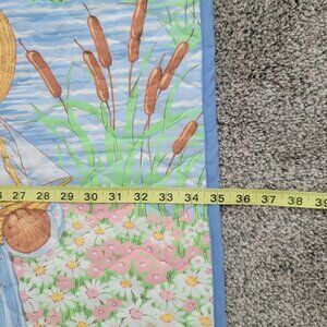 Not 100% sure It's either Cotton or Cotton/ poly blend, it was a panel & that part was cut off to attach the binding.