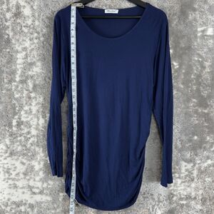 Bearsland Womens Size L Pleated Stretch Top Navy Long Sleeve Pullover Casual
