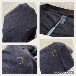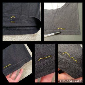 Exposed threading on front right short sleeve seam, under armpits, and on back of left short short seam (Pic #11).
