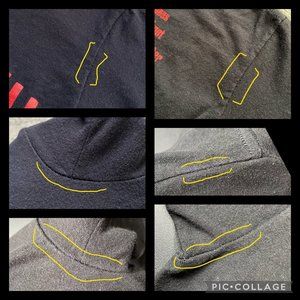 Snag on inside by one sleeve, appears to show a little bit on outside (Pic #12, bottom pics).