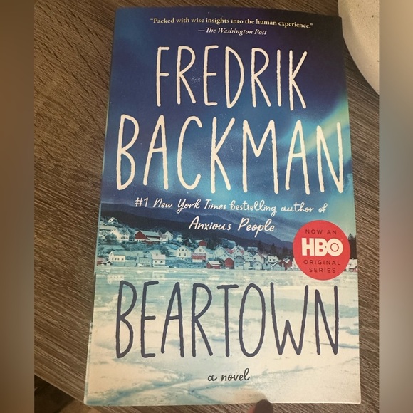 Beartown by Fredrik Backman. Paperback edition with a blue and white cover. A gripping novel now an HBO series.