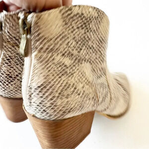 BEAST Fashion reptile print ankle boot size 5.5 women’s. Cream leather with embossed dark gray reptile print. 3” block heel. Preowned, very light overall wear.