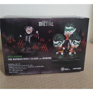 Prepare to enter the twisted world of Dark Knight Metal with the Beast Kingdom Dark Knight Metal Batman Who Laughs & Robins Figure. This new-in-box figure set captures the chilling essence of the Batman Who Laughs, the dark and malevolent version of Batman, along with his faithful and corrupted Robins.
