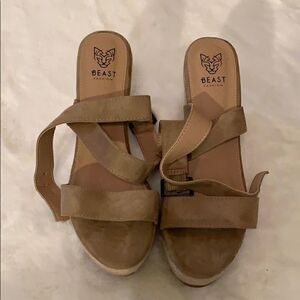 Beast Fashion tan suede material ankle strap platform. Size 10. Preloved in good condition. Only worn once. From smoke and animal free home.