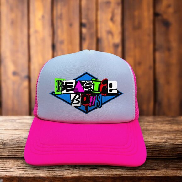 Beastie Boys Mens Trucker Hat Pink Snapback 90s Hip Hop Retro Logo Baseball Cap