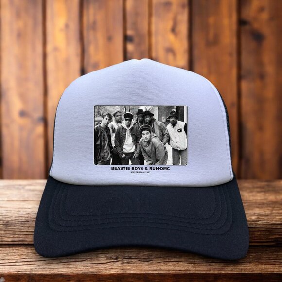 Beastie Boys Run DMC Mens Trucker Hat Black Snapback Retro 90s Logo Baseball Cap