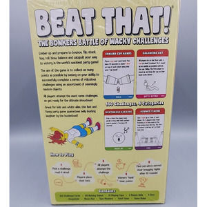 Beat That! The Bonkers Battle of Wacky Challenges Game Brand NEW. Incredible fun for families, friends or at parties. If this doesn't sell in a couple weeks I will probably keep it to play with my friends. There are a couple videos on Youtube about this game. Ships quickly and securely.