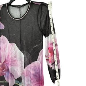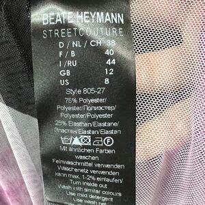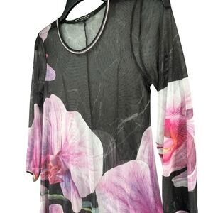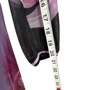 Beate Heymann Maxi Dress Womens Size 8 Black Purple Orchid Flower Sheer Stretch Mesh