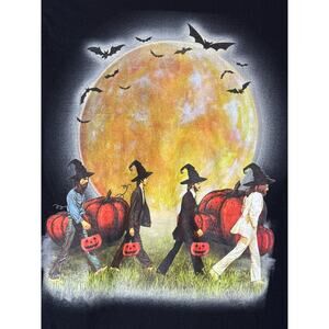 Gilden Soft Style Ring Spun black womens long sleeve tee-shirt. Features graphic print of the fab four The Beatles Abby Road in Halloween holiday attire with pumpkins. 100% cotton. PLEASE READ - tag size XL, todays small, see measurements. Excellent preowned condition EUC, no flaws. Professional, highly rated seller, quick shipper, open to offers! Multiple vintage items available, bundle to save!