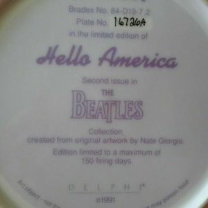 Beatles Collectable Plate in the Limited Edition of Hello America