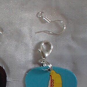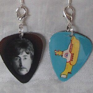 Beatles John Lennon Guitar Pick Zipper-Pull Handmade Earrings Yellow Submarine