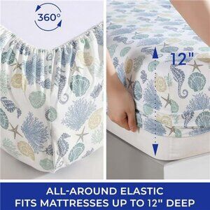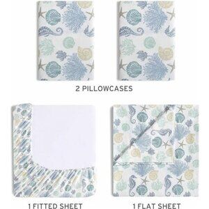 Beatrice Coastal Queen Sheet Set Soft Microfiber Deep Pocket Bedding Beach