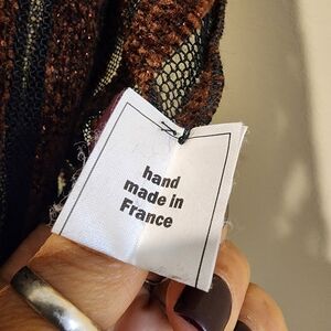 Beatrice Lissague Hand Made In France Striped Brown and Black Splarkling Scarf